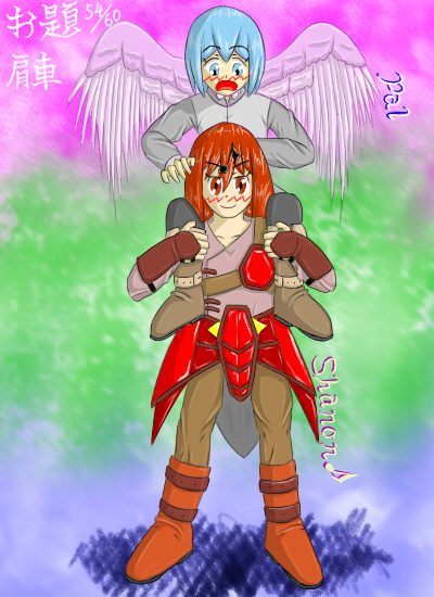 「いつまで負ぶさっとるんや! 早よ起きんかーい!」 「うにゃあっ!?」 |